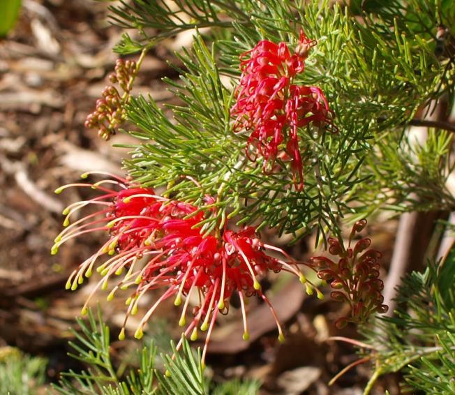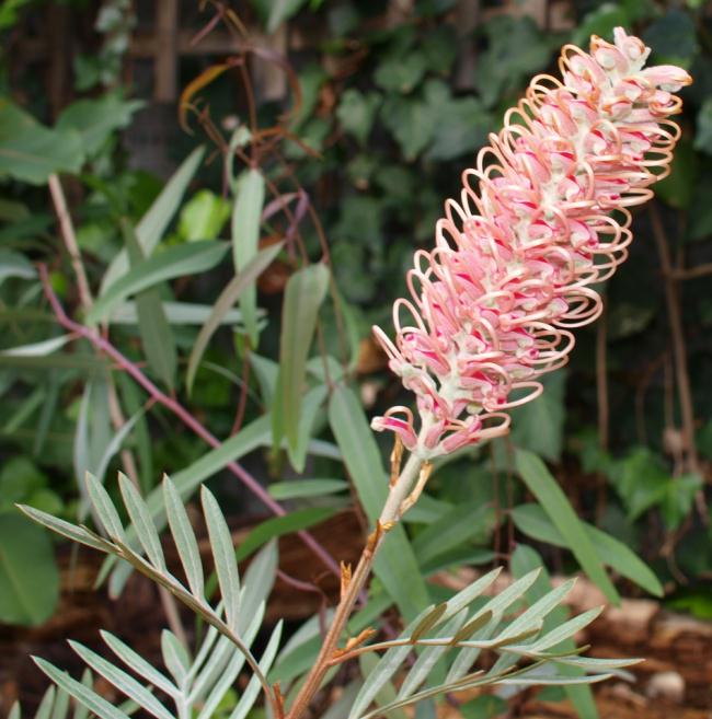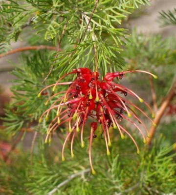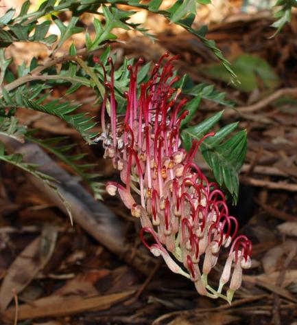 A grevillea flowering - the one before it got twice as big before dying a quick and mysterious death. We trust this one will get further!