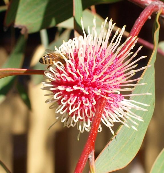 And, after 3 years, our pin cushion hakea is out;
