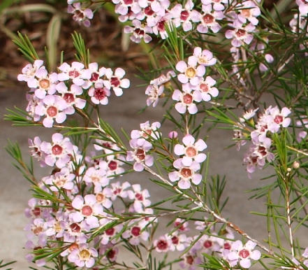 And out the front, the two year Geraldton Wax is also finally flowering. |