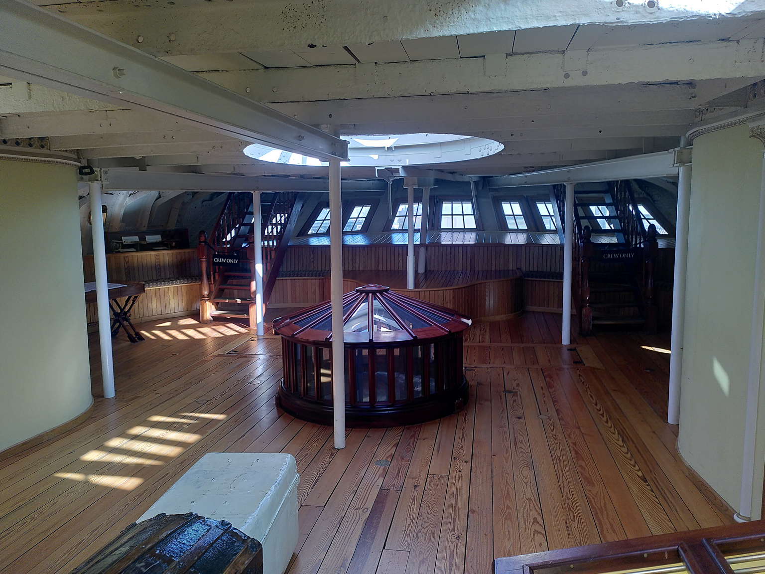 A view of the stern, showing how sunlight was transfered to below decks through skylights..
