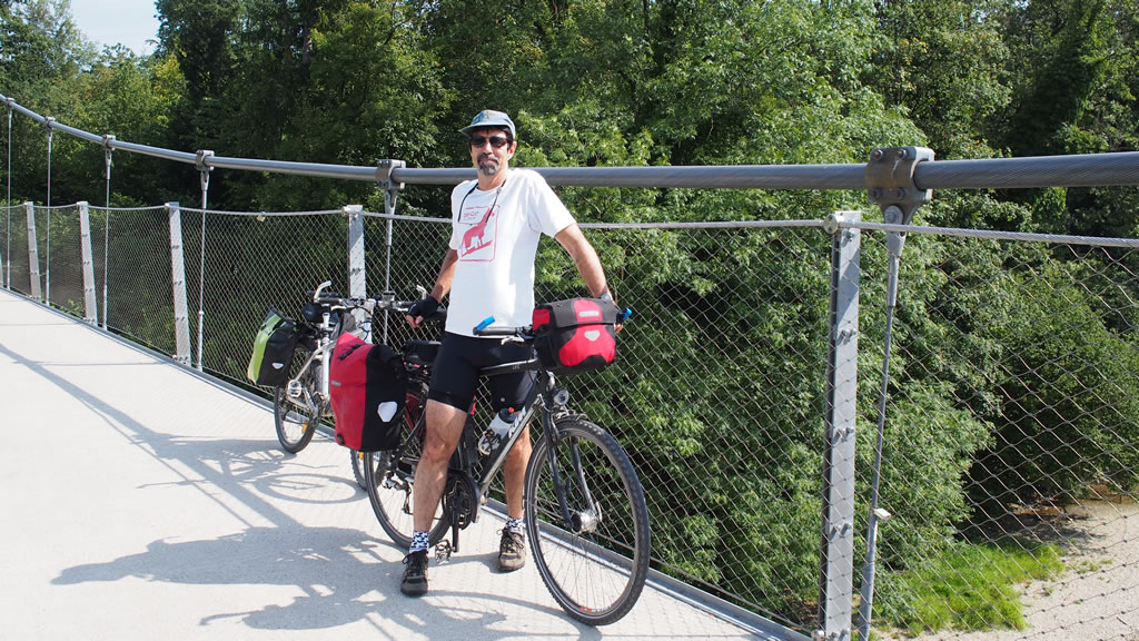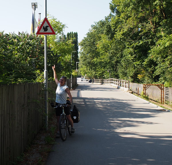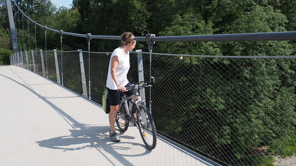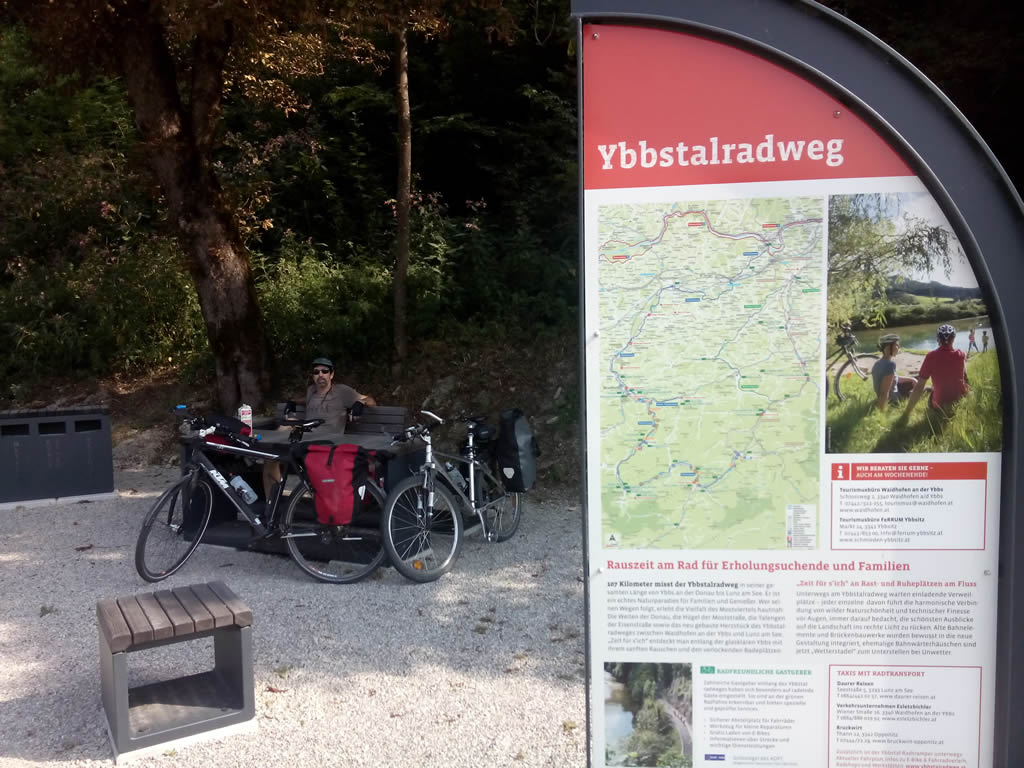 Mostviertel is a region east of Salzburg and north of Salzkammegut where a number of old railways have been converted into trails. We plan to ride there on the way back to Vienna. On Sunday, 5th of August, we catch the train east from Salzburg and get off an hour later at Amstettern. It takes a while before we are sure we are going the right way, a bike only bridge across the Ybbs River.